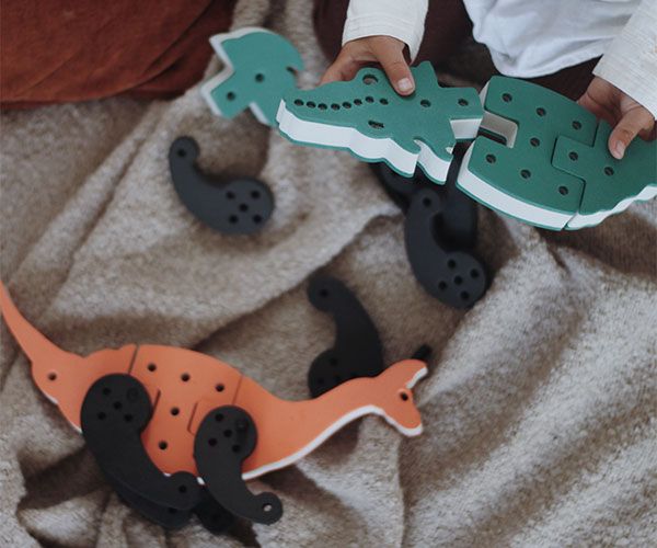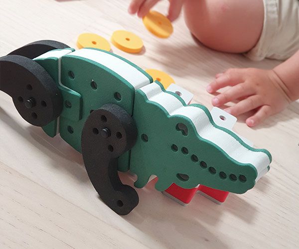 - Bloques combinables que forman diferentes animales al girarlos.