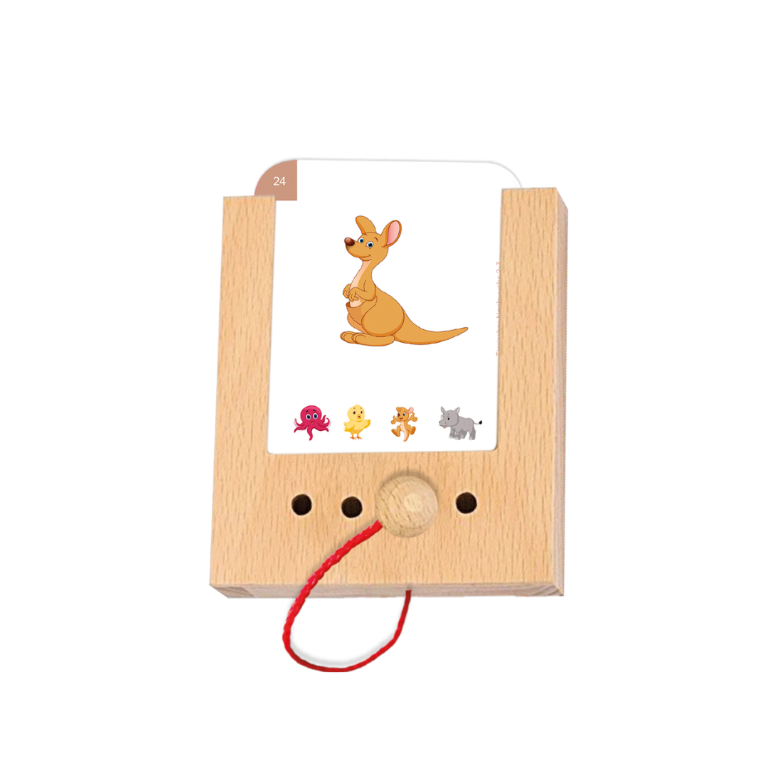 - Introduce la tarjeta en la caja y coloca el lápiz de madera en la respuesta elegida